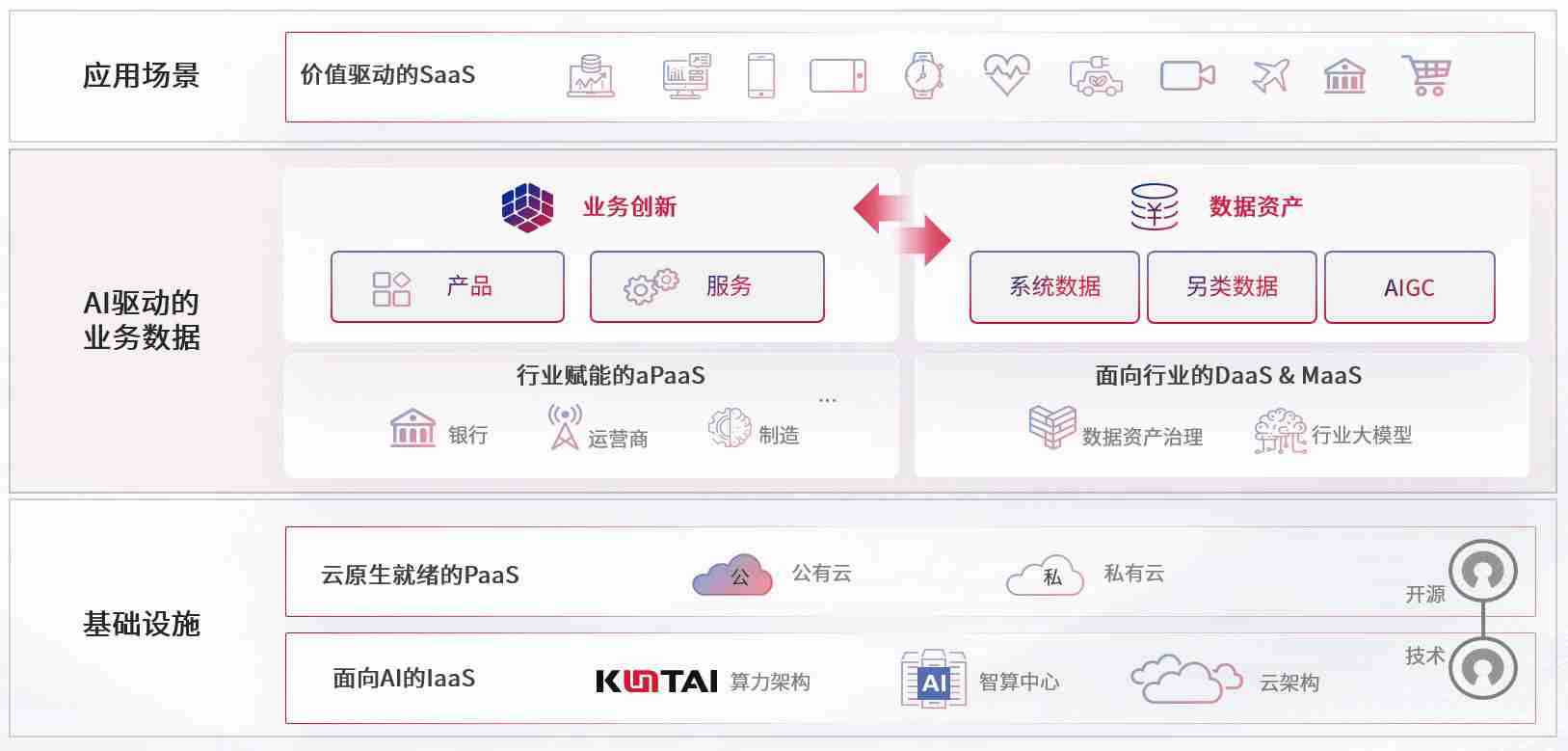 数字时代,,,,围绕企业数字化转型的关键要素,,,英国365上市公司数码开创性的提出数云融合战略和技术体系框架,,,,着力在云原生、、、、数字原生、、、、AI原生和信创产业上架构产品和服务能力,,,为处在不同数字化转型阶段的快消零售、、、、汽车、、金融、、、医疗、、、政企、、、教育、、运营商等行业客户提供泛在的敏捷IT能力和融合的数据驱动能力,,构建跨界融合创新的数字业务场景和新业务模式,,,助力企业级客户建立面向未来的核心能力和竞争优势,,全面推动社会的数字化、、、智能化转型升级。。