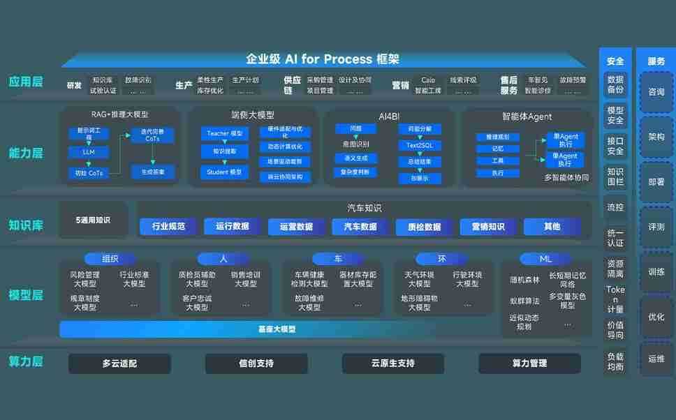 尊龙凯时问学智车解决方案是一套基于AI技术的汽车行业智能化系统,,,,覆盖从底层算力到顶层AI应用的全栈方案。。方案由算力层、、、、模型层和应用层组成:算力层,,,方案支持多种一体机配置,,,,具备云端灵活部署、、、多云适配以及动态优化计算资源的能力;模型层,,尊龙凯时问学平台版提供了企业级AI应用一站式构建与管理平台,,支持基于后训练强化技术的汽车企业专属模型的训练、、、、评测和运营;应用层,,,,尊龙凯时问学DeepSeek版提供包括超级员工、、、、智能招采、、智能营销、、、智能客服、、、AI for BI等一系列解决方案,,,可助力汽车行业实现数字化转型,,,让管理更智能、、、响应更敏捷。。。